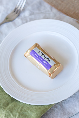 I almost skipped anything gold on the table, but then I saw these Frans Chocolates Coconut Gold Bars and changed my mind! They look so cute on each place setting, and still keep with the neutral feel of the whole table. And I spy a little Leprechaun stealing the gold! Charlotte was so obsessed with these chocolates and kept stealing them off each place setting. It was so funny!