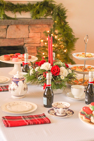 I had so much fun putting the table together for our Christmas tea. My inspiration started with the beautiful Teleflora floral arrangement. I love how traditional it is with the winter greenery, red roses and even a few pine cones! I always have such a fun time perusing the Teleflora website, knowing that I’ll get exactly what I order.